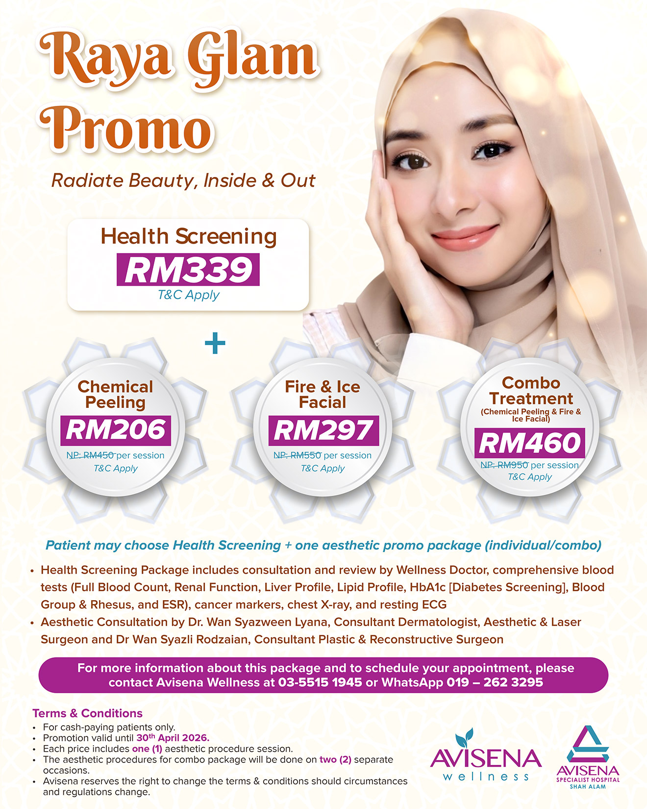 Radiate beauty inside and out with Avisena’s Raya Glam Promo. Enjoy exclusive health screening and aesthetic packages for a healthier, more confident you this Raya.